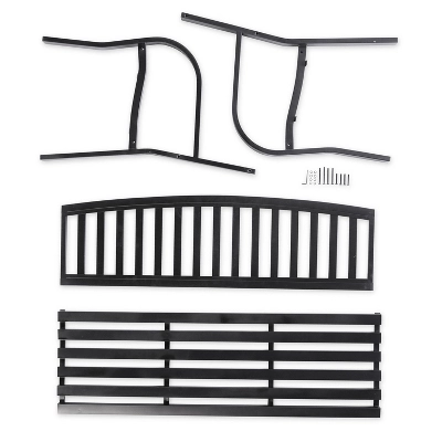 With a sleek black finish, this classic bench is an elegant addition to any garden. The unique design features a slatted seat, curved arms, and arched back. Crafted from durable cast-iron and steel, the bench is outdoor safe and rust-resistant.