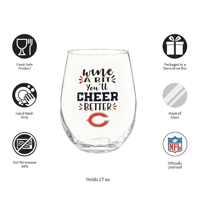 - Enjoy a glass of wine while watching your favorite NFL team. Features the official Chicago Bears logo and colors.