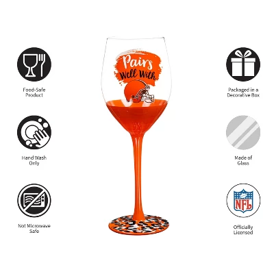- Wine pairs well with your favorite NFL team. This decorative wine glass features the official Cleveland Browns logo and colors. The base includes an animal print pattern that elevates the overall design.