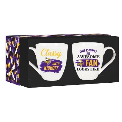 - These mugs have a sleek design and also include playful text to get you ready for gameday. Reads: “This is what an Awesome Fan Looks Like” and “Classy until Kickoff.” Perfect gift for a friend or family member who is a fan of the Minnesota Vikings.