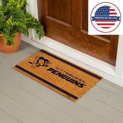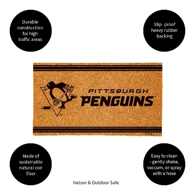 - Measures 28 x 16 inches. Get ready for the next big Pittsburgh Penguins game with this Logo Turf Mat.