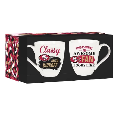 - These mugs have a sleek design and also include playful text to get you ready for gameday. Reads: “This is what an Awesome Fan Looks Like” and “Classy until Kickoff.” Perfect gift for a friend or family member who is a fan of the San Francisco 49ers.